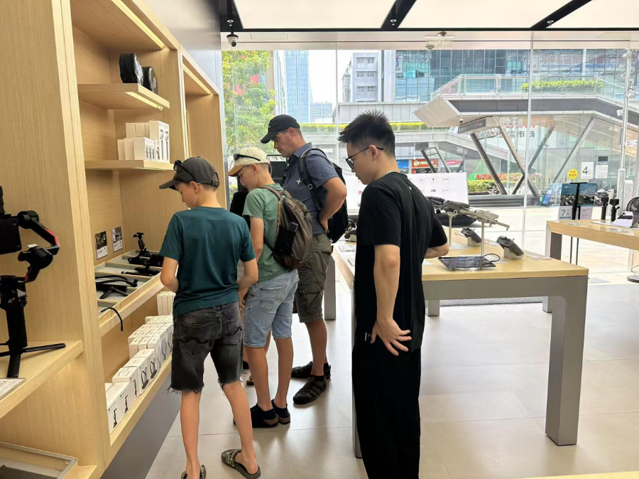 该店店员告诉南方财经记者,入境消费客群占四成左右,其中,在门店的外国顾客中,欧美客户占比70%。他们更喜欢买一款第一视角飞行体验无人机,由于国外部分地区地广人稀、飞行场景优越,适合用无人机拍摄风景,所以他们喜欢飞行速度更快,带飞行眼镜,体验感更好的无人机。